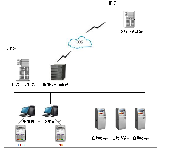 為了滿(mǎn)足各大醫院日益增長(cháng)的繳費需求,緩解醫院排隊繳費困境,南京瑞康資訊有限公司提出銀醫通系統的解決方案,在本方案中銀醫通包括兩個(gè)部分,一部分是窗口銀行卡收費,一部分是自助終端銀行卡支付。